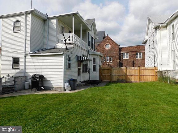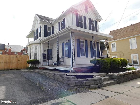 Just in time for summer! Enjoy your evenings sitting on the front porch or entertaining in your spacious rear fenced yard in this cute starter home. Freshly painted, new carpet upstairs and hardwood floors in good condition. Mostly all windows replaced. 2 bedrooms are pass through bedrooms typically seen in older homes. Bathrooms were updated at some point. Main level laundry room with a walk in shower. Only a few blocks from downtown shops, restaurants, year round borough festivities and school functions. Driveway with 2 off street parking places on the left and alley access on the right to a solid block outbuilding with electric and heat that's perfect for storing your motorcycle or using as a workshop.