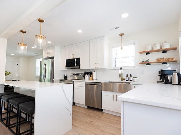 Welcome to this stunning coastal single-family home, meticulously renovated to feel like new construction. It was completely gutted to the studs with no stone left unturned. All windows have beed replaced with energy-efficient models, and brand new roof ensures durability and peace of mind, protecting your investment for years to come. The open floor plan seamlessly integrated the living, dining and kitchen areas, recessed lights throughout the first floor creating a bright and inviting space for modern living. The beautiful white kitchen is a chef's dream, featuring high-grade quartz countertops with a stylish waterfall edge, complimented with elegant light fixtures.The both full bathrooms are elegantly designed with sleek tile work and chic hardwares.The home boasts waterproof vinyl flooring throughout, ensuring durability and easy maintenance. Step outside to perfect back deck and yard, a blank canvas for your outdoor dreams- whether it's garden, play area, or entertainment space. Fully insulated and equipped with a new HVAC system, this home offers year-round comfort and energy efficiency. Every detail has been thoughtfully chosen to offer luxury and comfort, making it a true coastal gem. Whether you are looking for a new place to call home or a turnkey property to generate rental income, this house is the perfect choice. It is completely furnished and beautifully decorated, ready for you to move in or start hosting guests on Airbnb. Every detail has beed thoughtfully curated to provide comfortable and stylish experience. Equipped with smart locks and security cameras for enhanced safety and convenience, everything is there, all done for you! Contact us today to schedule a viewing and make this beautiful home yours!