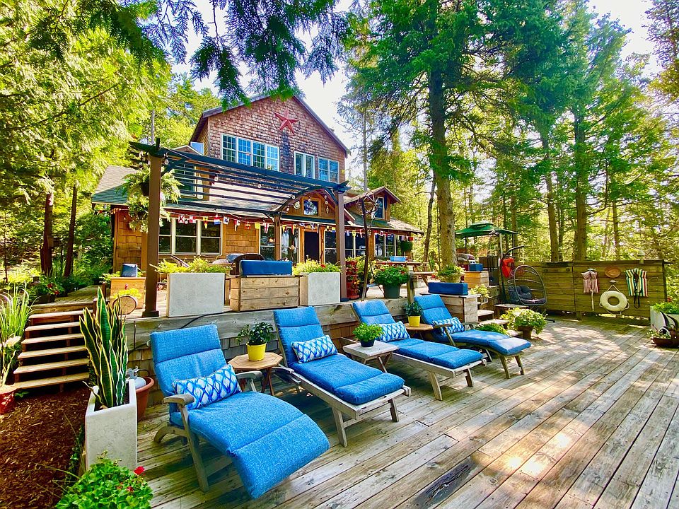 Phenomenal sunsets come with this unique Cedar Shake cottagethat is Rittenhouse inspired and sits on 136' of Mullett Lake. This privatesetting has a massive deck with multiple levels and an outside shower that sitsamongst the trees. Additionally, is the 12X10 art studio, and a storage area builtto house the toys The off-water entrance has a lovely sprawling covered porch towelcome your guests. The original cottage was on the lower level and built in the40's with the additional 2 floors built-in 2006. The handsome fieldstone fireplace encompassesa relaxation area and bar area. (Rittenhouse counter is not built in and doesnot stay. Bathrooms were designed with showering and a vanity area and a privaterestroom to accommodate family and friends.