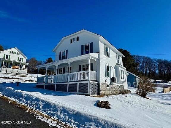 Gorgeous village home with huge room to run yard! Featuring double living room with big bow window newly remodeled kitchen w/butcherblock countertop & subway tile backsplash, formal dining, full bath and laundry room, wrap around sitting porch downstairs. Open stairway leads you to 3 bedrooms, extra-large full bath and big hallway closet upstairs. Home has beautiful wood flooring and trim throughout home, new Dakin AC/heat pump and exterior paint some new windows and fuel tank, lots of storage, detached barn-garage with huge attic storage and power, new attached toy port, newer appliances included. disconnect switch for generator. Walk to all location and mins to Vermont four season recreation!