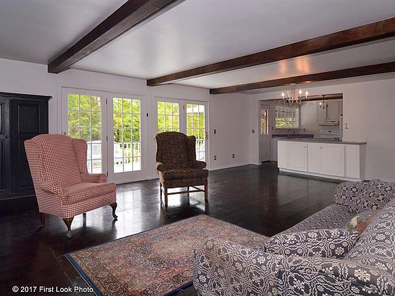 Charming Cape Cod Style Home. This home offers a variety of options from first floor living to maximizing beds for vacation stays. Located just minutes to South Shore beach, easily accessible by walking, bike or car. The home features a large open living room with wood burning fireplace, access to kitchen and sliders out to a large entertaining deck overlooking perennial gardens. Also located on the first floor is a full bath with tub/shower, laundry, sitting area and either a living room with fireplace, or potential for a master bedroom. Wide plank pine flooring and exposed ceiling beams give this home old world charm. 2nd floor has 3 bedrooms and a 3/4 bath. Easy to manage lot size with mature landscaping. Potential to improve and match the other gorgeous homes on this street.