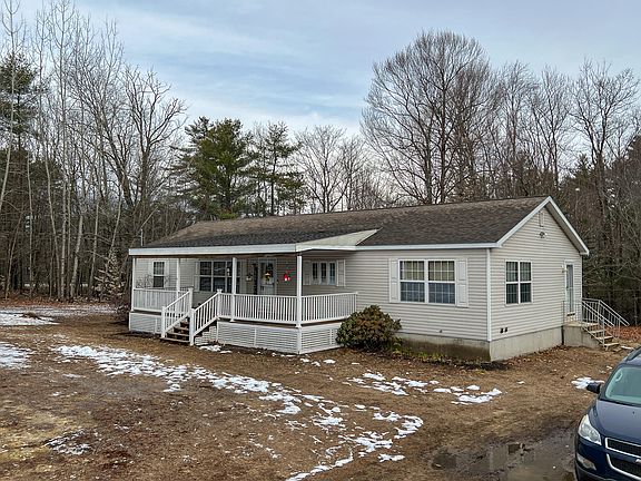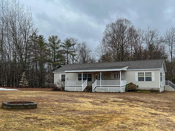 Ranch on a flat lot, gas remote fireplace in the living room. Spacious galley kitchen with large island. 10x32 farmers porch on the front. Some new carpets and freshly painted rooms. Lots of dry basement space available for storage or future recreation room with partially sheetrocked walls and heat. Dead end road has boat launch access to Androscoggin River.