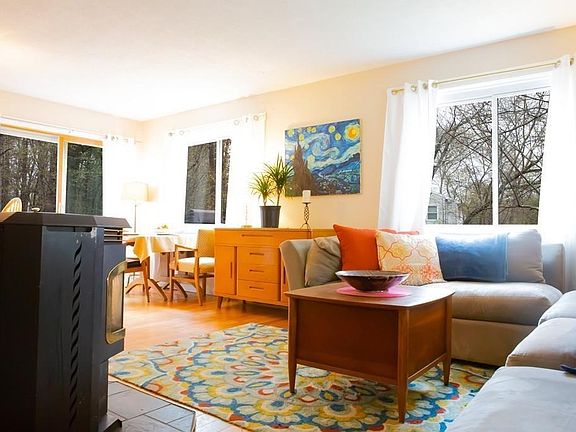 Sweet cape at the end of a cul-de-sac with a 2 bedroom accessory apartment in lower level to help pay your mortgage or to allow for plenty of space for extended family or guests! Main house has three bedrooms, open floor plan on main level consisting of a living room with pellet stove, kitchen with brand new stainless steel refrigerator and dishwasher, dining area with breakfast bar as well as a bedroom/den and a half bath that is currently housing the washer/dryer. Second floor has two nice sized bedrooms and a full bath. The lower level has a two bedroom accessory/in-law apartment with it''s own entrance. The apt has an open kitchen/living room/dining area and a three quarter bath. Great rental history and makes for a great air B+B rental. Nice large deck overlooking private backyard with perennial gardens and a covered front porch off the front. New septic tank, water heater and newer energy efficient windows.So much potential here!