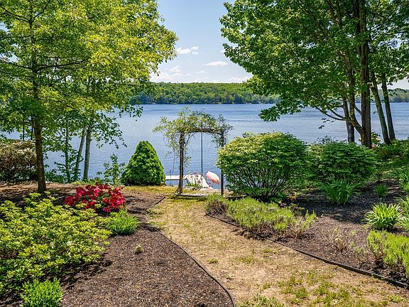 Just wait until you step into this fabulous year-round property newly built from the ground up in 2014 on the shorefront of Middle Range Pond in Poland Spring Maine! This beauty has it all since the owner spared no expense in the construction process with state of the art Geothermal heating system, Gas floor to cathedral ceiling rock gas fireplace, covered sundeck overlooking stunning waterfront mature landscaping leading to the waters' edge. The dock will also remain with the property for hours of enjoying the many pleasures whether it be boating, fishing or just relaxing in the sunlight or listening to the loons as the evening approaches. The handsome kitchen cabinetry offers oodles of roll out drawers & built-ins plus you will just love the fabulous deep Farmer's sink and granite counter tops galore! There is a very spacious pantry and 1/2 bath with laundry for convenience on the main level. The 1st floor primary bedroom has an adjoining full bath with walk-in shower and walk-in jetted tub. There is also direct access to the covered porch for the perfect spot to enjoy your morning coffee or gazing at the stars in the evening. On the 2nd level there is a HUGE open loft overlooking the cathedral ceiling of the living space below. On this level there is a very large bedroom with its own full bathroom that could easily be divided for added privacy space. The full basement below offers a large family room for entertaining with sliders for walk-out capabilities to a screened-in patio room to party-on through the day or evenings. There is also another very spacious room with its own private bath that could serve as an exercise room, recreation room or 2nd bedroom if this is the area where someone would prefer to have their bedroom located. The possibilities with this property are endless! Located in Poland Spring there is so much to offer with the Poland Spring Inn & Golf Course located just up the road and the Nonesuch River Brewing Restaurant just across the pond!
