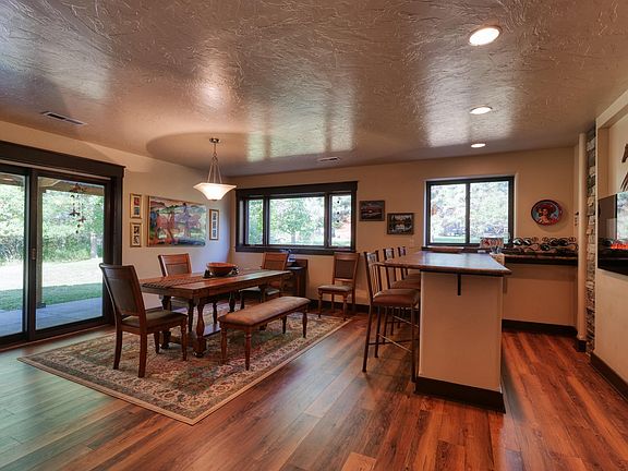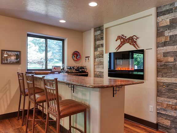Bring your fishing rod. North Piney Creek borders the property. Tastefully designed interior with 3 fireplaces, an open floor plan and a celebration bar in the corner (stools included). Wrap around covered porch and 2 firepits. Workshop space attached to the garage. It's move-in ready. All measurements are approximate.