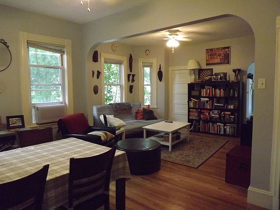 This is a sun filled, two bedroom apartment on the second floor of a vintage Victorian building. Half a block off of Main St., on the Winter Hill Somerville/Medford line; 10 min drive to Boston; bus at end of block; easy commute by bus to both the Red and Orange Lines; walk to restaurants, bars, entertainment. One mile from Tufts campus. The apartment features: an open 22' living/dining room with original woodwork; windows in every room; hardwood floors; private front entrance; large bedrooms with big closets; full bathroom with tiled tub/shower; big eat in kitchen with gas stove, refrig, dishwasher, disposal, many big cabinets, full pantry; all updated paint colors; insulated building and replaced windows; ceiling fans. Laundry in building. One free off street parking spot with apartment and plenty of free on street parking available. Huge back yard for your entertaining and grilling pleasure in a quiet residential neighborhood setting. Snow removal and lawn care included. First month and security deposit required. No pets. No smoking. No fees. Available Sept 1, one year lease. Shown by appointment only.