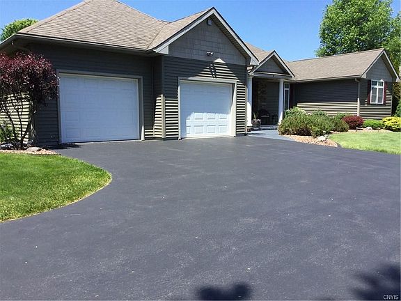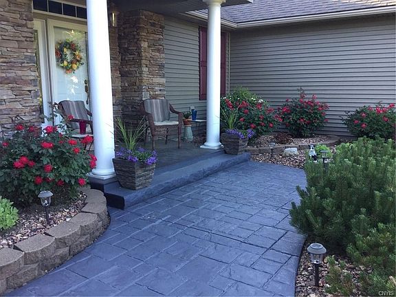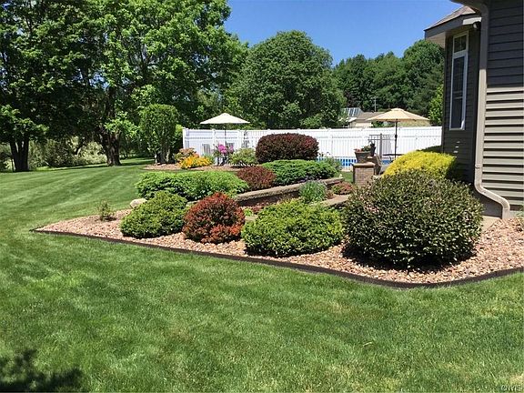 Stunning custom ranch with an exterior just as beautiful as the inside. You'll be impressed with the attention to detail this 2,136 sq. ft., 3 bed, 3 1/2 bath home has been given. Large open floor plan with pillared great room finished in Brazilian cherry hardwood flooring, cathedral ceiling, rounded corners, and gas fireplace. Gorgeous kitchen is trimmed in cherry cabinetry and offers granite counters and bar with matching cherry/granite desk space, ceramic tile flooring, stainless appliances, and pantry. Large laundry room has full sink and additional cabinets. Master suite has dual sinks, walk-in closet, marble finished bath, and jacuzzi tub. The other two bedrooms are nicely laid out and good size. Basement has superior wall foundation with over 1,500 sq. ft. of additional finished living space, gas fire place, full bath, storage room, work shop, and beautiful stone walk-out area to the outside. Home has whole-house Bose stereo/theatre system. Garage has additional bump-out space with entrance door from backyard to store yard tools and toys. The exceptionally landscaped yard has a large in-ground heated pool and paved patio. A 4th bedroom could easily be made in basement.