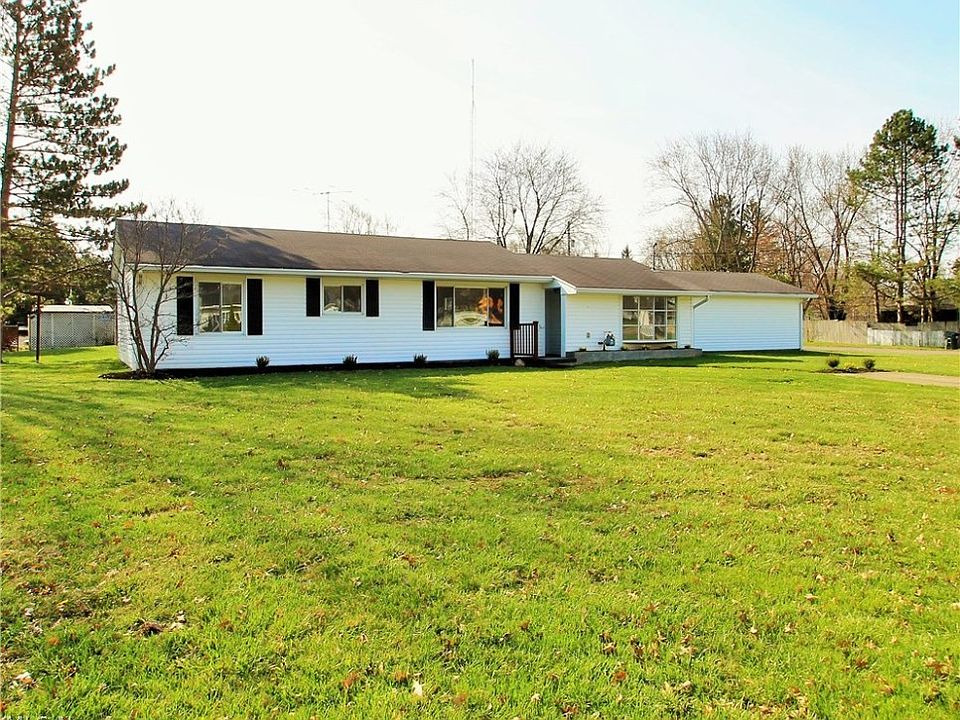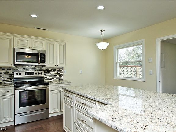 One floor living ~ Spacious open floor plan ~ High-end designer updates: This 3 bedroom, 1 bath ranch has it all! Engineered wood floors span throughout the living room, eat-in kitchen and laundry room. Fresh wall, ceiling & trim paint in bright, neutral hues throughout make this incredible ranch an easy transition. The eat-in kitchen has been remodeled with quality cream-white, glazed cabinetry with soft close drawers, brushed nickel hardware & have been topped with gorgeous granite counter-tops! The large center island & open concept offer a great entertaining area! Stainless appliances & glass-tile back-splash complete the look. The remodeled bathroom offers plank-look tile floors, double sink vanity with storage cabinets, a linen closet & new bathtub & surround. New carpet in the bedrooms and the spacious family room with a large picture window and door leading to the private concrete back patio! 1 1/2 Car side-load garage. All of this on over 1/4 acre corner lot!