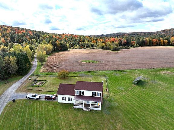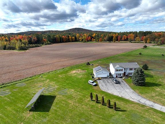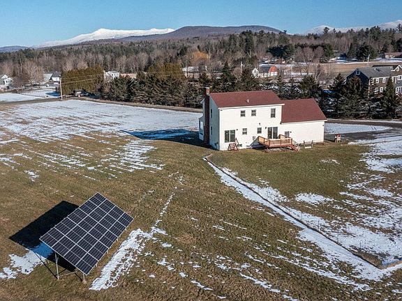 Enjoy gorgeous Green Mountain views right from your front porch in this 3-bed, 2.5-bath classic colonial home! Set on 3 acres of lush pastureland, this home offers a restful quiet setting overlooking a 40-acre organic farm. This spacious home features a large eat-in kitchen with sliding patio doors leading out to a large back deck with beautiful pastoral views. A separate dining room and sunny living room feature hardwood floors and lots of windows plus a separate office space and a second set of sliding doors to the backyard. At the center of the living room is a brick fireplace with a brand new wood pellet stove insert that heats the entire house. Upstairs is a primary suite plus 2 additional bedrooms, all with hardwood floors, and a full bath. A large 2-car garage offers plenty of storage with unfinished space above, ready for your finishing touches (interior access from 2nd floor). Outside you'll find a partially fenced backyard and an owned ground mount solar system. While just minutes from town services and I-89, you'll enjoy a slice of country living! Skiing, biking, and hiking are just a short drive away. You don't want to miss this one!