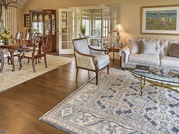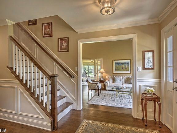 Filled with an incredible array of recent updates, an upgraded Mendham Commons townhome is the perfect place to call home. A stunning 2018 renovation included all new Andersen windows and two glass doors, custom Hunter Douglas shades and plantation shutters, gleaming hardwood floors, newly carpeted bedrooms, intricate millwork, remodeled baths, an updated kitchen, a bright sunroom and an extraordinary finished lower level. This sought-after Abbotsford end unit with first-floor bedroom/office, on a premium lot features a private, wooded setting with distant views of a babbling brook. The sunny layout provides three bedrooms and four full baths. Creating a welcoming entry is the covered front porch introducing the foyer and open floor plan leading to the engaging formal living and dining areas. The beautifully updated kitchen is a favorite gathering place; it is designed with a breakfast bar, custom cabinetry, quartz countertops and a new Sub-Zero refrigerator. Opening directly from the kitchen is a family room anchored by a wood-burning brick floor-to-ceiling fireplace with a gas starter, new glass doors and fire screen. Andersen glass doors open to the verdant backyard, porch and patio. Nearby is a re-configured laundry/utility room with storage pantry and access to a one-car garage with finished walls, floors and storage cabinetry. The remodeled sunroom is a perfect, private venue for entertaining or relaxation. Additionally, there is a convenient first-floor bedroom or office served by a gorgeously upgraded full bath. A striking stairway with custom railings leads to the second-floor bedrooms and new landing, loft and railings. The exquisitely carpeted master suite features a sitting room with new, remote-controlled brick gas fireplace surrounded by an elegant mantle, and a magnificent custom dressing area with built-in television in the mirror, walk-in closet and new vanity. In the stunning master bath there is a stall shower with handheld shower and wall body sprays and a skylight. A nicely-sized third en suite bedroom connects to a full, bath. New pull-down stairs lead to the attic which is floored for storage. The fabulous finished lower level is arranged with recreation and game rooms, an office, full bath and cedar closet. There is an efficient three-level heating and cooling system with new furnaces, hot water tank, kitchen water filter and a new Electrolux central vacuum system. Among the other recent additions to this impressive end unit are custom-designed closets, three new Casablanca ceiling fans, new lighting fixtures throughout, and the addition of crown, chair rail, shadowbox and custom base moldings. Three sides of the property are landscaped and freshly mulched. This stylishly updated end unit is enhanced by Mendham Commons' wonderful amenities including a gated entry, indoor and outdoor pools, clubhouse with kitchen facilities, exercise room, men's and women's locker rooms, tennis court and playground. Patriots Path is adjacent to the property for hiking and biking. This gracious community is close to the charming village of Mendham with popular dining and shopping options. Morristown is just minutes away with Midtown Direct trains, great restaurants, shopping, museums and access to major commuting routes.