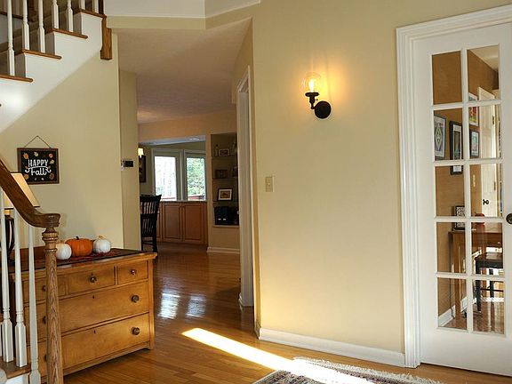 Sun filled and exquisitely maintained home! This 4 bedroom, 3.5 bath home features a 2 story formal foyer, a first story study with french doors and large windows, a stunning open kitchen with quartz countertops and custom wet bar, a family room with vaulted ceilings and large second story windows that fill the room with light. The eat-in kitchen has doors that open to a large deck for entertaining. There is a formal dining room that leads into another cozy sitting room. The large master suite has a walk-in closet and a newly remodeled bathroom with a modern standalone tub that's framed by views of a scenic backyard. Of the additional three bedrooms and two bathrooms on the second floor, one features an ensuite bathroom. The house is surrounded by beautifully maintained landscaping with a stream that borders the property. The finished, dry lower level with full size windows allows for many possibilities. Don't let this one get away!