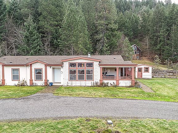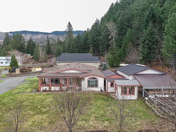 Meticulously kept home w/ a great layout! Double living spaces w/ Tray ceiling & double-sided fireplace, large open kitchen with walk-in pantry. Primary bedroom has bonus room attached for nursery or office! 26'x36'shop to store all of your Gorge toys. Greenhouse, fenced garden with raised beds & irrigation, Tuff Shed, & more! Double circular driveway recently chip-sealed. Enjoy Mt. Adams views while relaxing on the peaceful covered porch. Abuts DNR property. You'll want to call this place home!