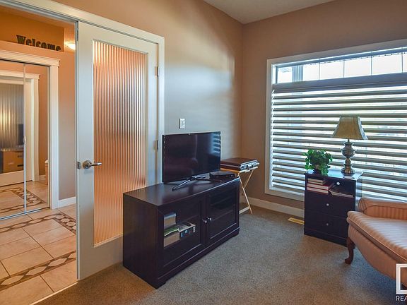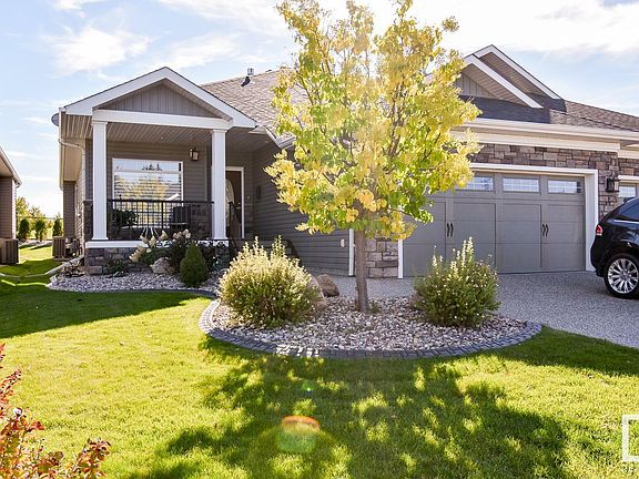 Here is beautiful adult living in a sought-after community near the Links golf course. This 50+ bungalow impresses with plenty of upgrades and built-ins throughout 1477 sqft above grade plus fully-finished basement. The abundance of windows and light will captivate you, as will gorgeous hardwood, ceramic tile, granite countertops, and stately fireplace. The very spacious primary bedroom with walk-in closet has a retreat-like feel with a soaker tub, shower & double sinks. A lovely den (or bedroom) is situated at the front entry and there's a 2-pce powder room along with laundry on the main floor. Down the stairs are two more bedrooms, a 3-pce bath and lots of room to entertain with wet bar, games area, second fireplace, second office, and spacious storage room! Other notable features include central A/C, sound system throughout, heated garage with floor drain and water taps. Relax and enjoy -- the yard backs onto park & trails and your lawn and snow are taken care of with a low HOA fee. Welcome home!