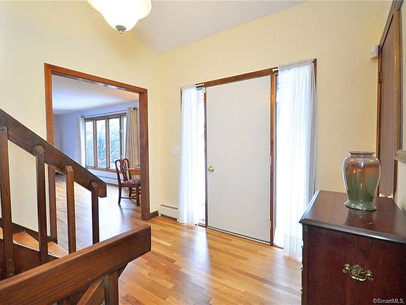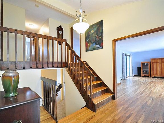 Location, Location, Location and a beautiful view in a cul-de-sac neighborhood - minutes to Granby center Sun-filled, 4 bedroom, 2 1/2 Bath Contemporary, Split level situated on .76 acres. Eat-in cherry Kitchen with newer appliances opens to the fireplaced family room, first floor laundry, newer carpeting, master bedroom suite with cathedral ceiling and walk-in closet. Updated baths, gleaming refinished hardwood floors, 2 car garage.