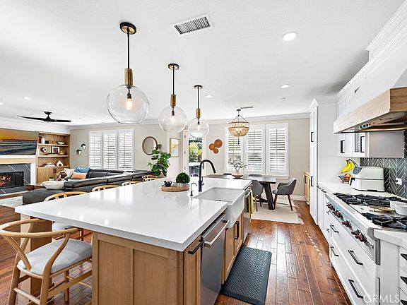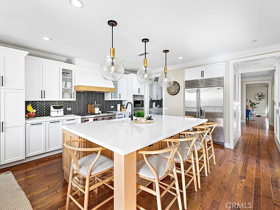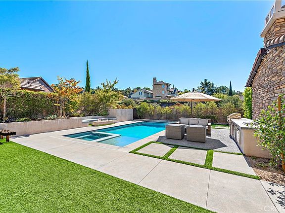 Move up to the exclusivity and prestige of a Covenant Hills address at this luxurious Ladera Ranch home, where fresh upgrades and grand architectural style are enjoyed inside and out. Newly remodeled Kitchen is Impressive! Custom hardscaping and newer landscaping enrich curb appeal in the front and a pool and spa in the backyard, which also hosts a fire pit with built-in seating, a basketball court, synthetic turf, a private courtyard, and a built-in BBQ station with sink and burner. The large homesite, which extends nearly 10,000 square feet, provides an upscale setting for a stylish executive residence that is characterized by a curving staircase in the foyer, a generous family room with updated fireplace and media center, five ensuite bedrooms and five-and one- half baths. Wood flooring complements first-level living spaces, including a formal dining room with impressive chandelier that flows through a butler’s pantry to a Newly Remodeled designer kitchen with island, white cabinetry, a nook, built-in desk, solid-surface countertops, and stainless steel Wolf appliances. Newer high-end carpet, new interior and exterior paint, crown molding, plantation shutters, upgraded lighting, a three-car garage with newer epoxy floor, a water-filtration system, and a thermostat, door lock and doorbell by Nest are featured throughout. Approximately 4,200 square feet, the two-story floorplan is crowned by an opulent primary suite with spa-caliber bath and spacious walk-in closet. Covenant Hills’ citrus grove, parks, clubhouse and pool and are close by, and major transportation corridors make it easy to enjoy the beaches of Orange County.