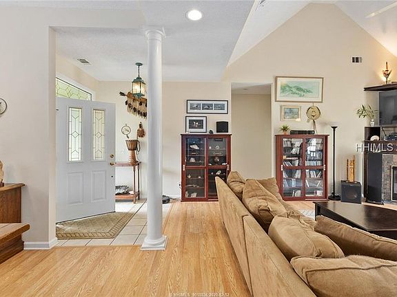 LIVE THE BLUFFTON LIFESTYLE. Relax by the fire pit while you take in the wooded lagoon view or put in your kayak or fishing pole off your private dock. All this and a quick golf cart's ride to Old Town. Shopping, restaurants, and the Hilton Head bridge just minutes away. Great room separation, vaulted ceilings, gas fireplace, tiled Carolina room, dining room and eat-in kitchen, bonus room/4th bedroom above garage with private bath, floored walk-in attic space that goes on and on, composite siding. Very large, premier lot. Original model home. Low HOA fees at $575/yr. Boat storage $150/yr. DON"T LET THIS ONE SLIP AWAY!