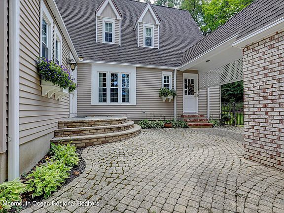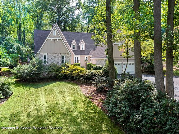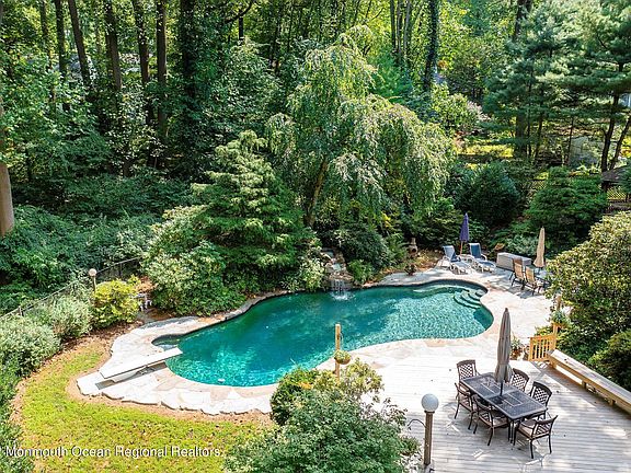 Haven of Tranquility! Peacefully positioned at the end of a private cul-de-sac this charming home provides all the elements for a relaxing, comfortable & modern lifestyle. The main floor enjoys a welcoming front foyer which leads to the graceful Living Rm complete with wood-burning fireplace, decorative moldings & Anderson doors to the expansive outdoor deck. Formal Dining Rm with French Doors leads to the Family Rm featuring an additional wood-burning fireplace with brick surround. Anderson sliding glass doors to the outdoor patio provides seamless integration between both the indoor and outdoor areas. Newly updated Gourmet Kitchen features a large center island with quartz countertops, high-end appliances & light-filled eat-in area overlooking the beautiful grounds. A 1st floor Primary Suite is ideally tucked away & offers endless opportunities including spacious Office/Nursery, walk-in closet & newly updated Primary Bath. The 2nd floor features 3 additional spacious bedrooms with generous closet space, full hall bath, impressive attic space with cedar closet & tremendous storage possibilities. The backyard oasis is a dream come true & provides a serene & peaceful atmosphere complete with gunite pool, gazebo & fish pond. Truly too special to miss - you must experience this idyllic property for yourself! Buyer 1 year HSA Home Warranty included. Conveniently located near iconic Bell Works, MSK, NYC transportation, GSP 114/Rt35, beautiful parks & Jersey Shore beaches.