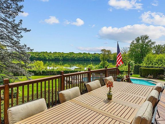 From a renowned local builder, in the exclusive private cul-de-sac of Fieldstone Court, this contemporary colonial overlooks the serene Lake Deforest. Boasting 5 bedrooms, 5 baths, an open design, spacious patio & in-ground pool, this home sits on .69 of an acre of finely landscaped grounds, with lake views throughout the home year round. Step inside to a grand atrium that flows effortlessly into dual living rooms united by a wet bar—perfect for hosting. The expansive dining room, is adorned with two sets of French doors. The spacious kitchen boasts a dine-in area, high-top bar, Culligan water purification system, garbage compactor, and a versatile island equipped with an additional sink, built-in grill top, and food processor-all opening to the generous porch and poolside retreat. Cozy up at one of the two fireplaces and enjoy this vacation style home. The basement includes another estimated 1800 sqft of space with walk out access to the patio and pool. Additionally, the garage is wired for EV charging! Ideal for commuters — the breathtaking views will make you forget you’re just minutes away from New York City. New City features award winning schools, fine dining experiences, shopping, outdoor activities, local parks, and easy access to major highways for an easy commute to anywhere.