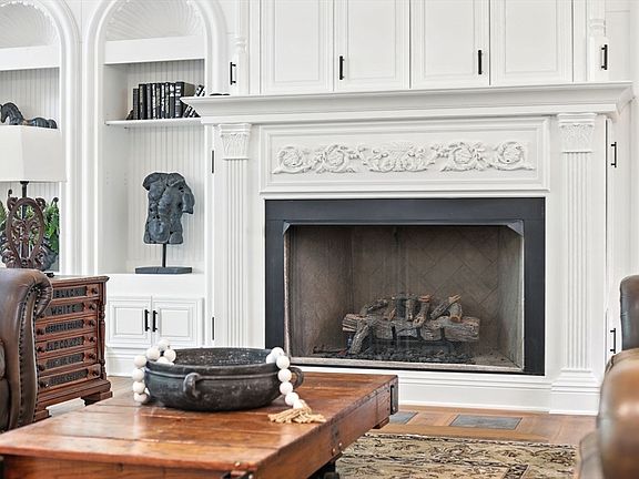 This stylish custom-built home commands attention from the moment you arrive. Set on a manicured estate in a private cul-de-sac, it showcases vaulted ceilings, dramatic wall-to-wall windows, designer lighting, and a gas fireplace. The expansive open-concept layout offers 4,200 square feet of living space designed for grand-scale entertaining. A sleek chef’s kitchen includes accent cabinetry, Viking appliances, a breakfast bar, radiant heat throughout the main level, and a high-efficiency heating system. The main suite features tray ceilings and a custom walk-in closet with floor-to-ceiling shelving, a center island, and a spa-style tiled shower. Three additional bedrooms include one currently used as an office with a half bath. A second-floor private ensuite with a brand-new bathroom is perfect for a hobby room, home office, or guest suite. The backyard retreat features a cedar pergola, outdoor kitchen, bar area, lantern lighting, and a built-in fire pit.
