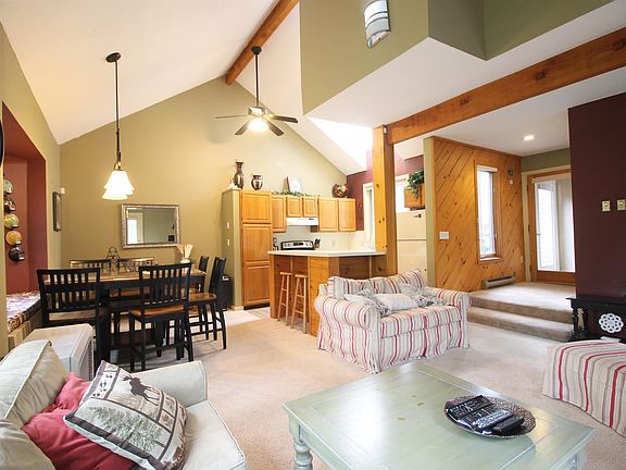 JUST REDUCED! Great layout in Waterville Valley...this large Forest Rim 3 bedroom plus loft condo is privately tucked at the end of a cul-de-sac, but still so close to everything. Enter the property through one of the best mudrooms in the valley with an air lock and plenty of room for all your gear with a door to close it all off! Inside you'll find an open layout with dramatic cathedral ceilings and a comfortable floorplan perfect for entertaining. Warm your toes by the elevated fireplace and relax after a fun day outdoors. You can live all on one level with the master bedroom on the living level and a HUGE attached bathroom with hot tub. Upstairs you'll find the 2nd bathroom with additional sink plus 2 more bedrooms, one with a large loft which acts as a great 2nd living room or sleeping space. Each bedroom has a large walk-in closet with plenty of storage. Forest Rim borders the National Forest and has very easy trail access for hiking, biking and XC skiing. This condo would serve as the perfect home base for all of your outdoor fun. You'll also find the WV Recreation Department, Curious George Cottage and the White Mountain Athletic Club a very short walk away. Showings are subject to availability on the unit's short term rental calendar. (WMAC $750)