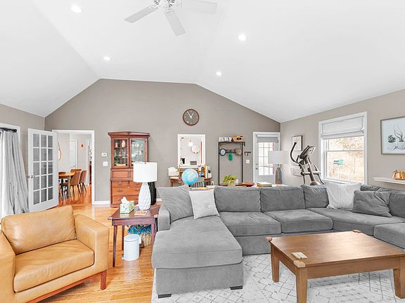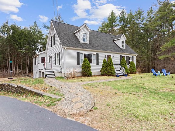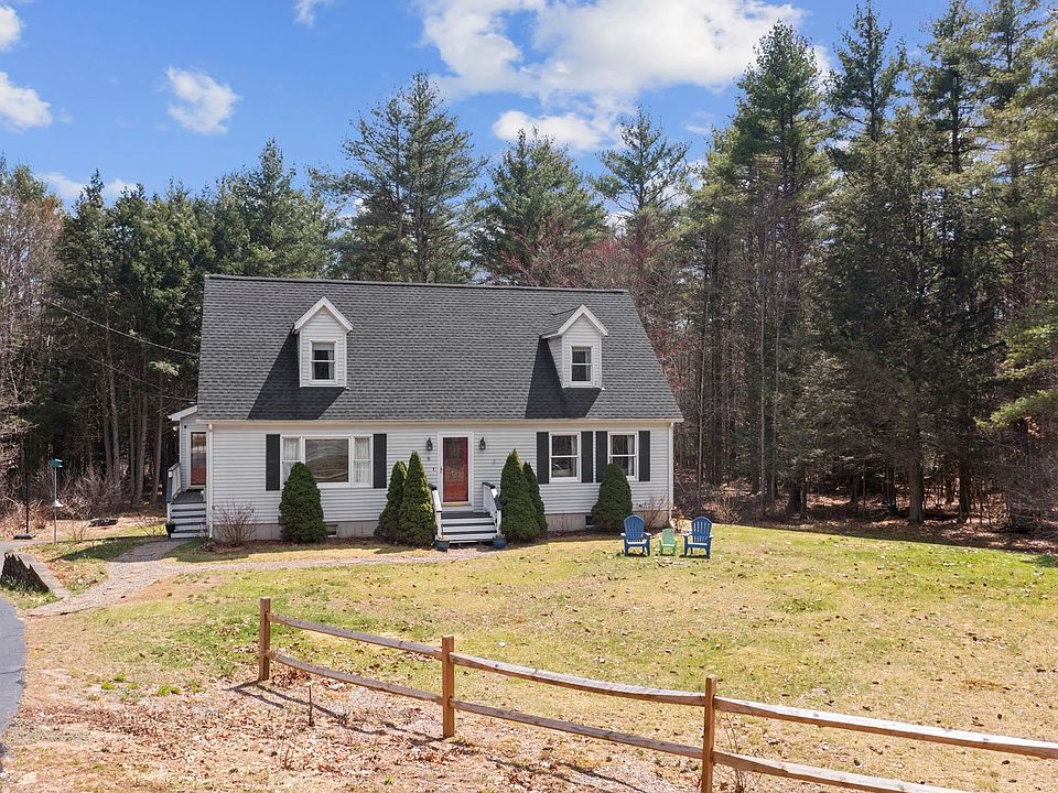 Welcome to 8 Fogg Circle! This spacious 3 bedroom, 2 full bath Cape is just what you have been waiting for! Pride in ownership is shown throughout. Located at the end of the cul-de-sac, the home has a beautiful kitchen with eat-in area, sun filled dining room, cozy den with pellet stove, bedroom or home office, full bath and awesome 24x24 bonus family room with cathedral ceiling and pellet stove. The second floor has an over-sized primary bedroom with walk-in closet and en-suite bath that is shared with the third bedroom, hardwood floors throughout the home. A large 2-car garage under and large basement for all your storage needs, generator hook-up, firepit area, shed complete the package! All of this on your private 2.79 acre lot. You do not want to miss this one! Open House Saturday June 22, 11-1pm. Sunday July 23, 11-1pm