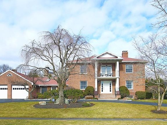 Majestic center entrance brick colonial in Pigeon Hill Estates. This home features an amazing architecturally designed kitchen renovation that includes custom soft close Omega cabinets, Miele appliances, and Silestone counter tops. Some of the features include built in Miele coffee, cappuccino and frothy drink system, steam oven, warming drawer, induction cook top, ventilation hood, and wet bar with beverage water & filtration system. This home has a wonderful flow for entertaining with a first floor formal living room, dining room, library, family room and gym or home office with separate entry, two half baths, and 3 fireplaces. The second level features 4 bedrooms and 2 baths including a spa like master bedroom/bath with fireplace. The lower level is ideal as a guest suite with kitchenette, full bath and exterior access.The home sits on over a half acre of land with a professionally designed English garden, a circular driveway, 2 car garage and wonderful plantings and fruit trees.