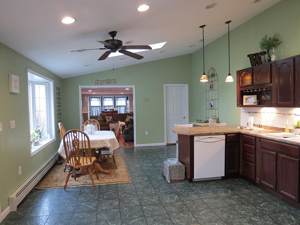 Spacious 2 bedroom apartment. Available in May. Walking distance to the beautiful West Brookfield Town Common. Large eat-in kitchen with cathedral ceilings. Sunny 3 season room. First floor laundry and mudroom. Large master bedroom with cathedral ceilings, walk in closet and master bath. Second full bathroom with walk in closet for second bedroom. Shared patio and nice yard. Rent includes, trash and snow removal. One garage space and two off street parking spaces. No pets, no smoking. References and credit check required. First, last and security deposit. Call for an application or showing.