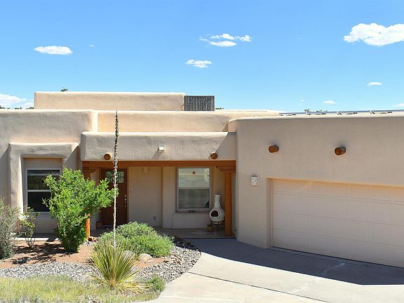 Beautiful Santa Fe style home with amazing views on two lots in the Dos Griegos subdivision! At 1818 square feet, this 3 bedroom, 2 bath home is perfectly sized for easy maintenance and efficiency. There is also a bonus room that makes a perfect office, or could be used as a 4th small bedroom. 10 solar panels, Low-E windows and R-40 insulation in the ceiling make utilities affordable. Enjoy the views, temperate foothills climate and extensive landscaping from the covered porch, overlooking a full 2nd lot that provides privacy, but is completely buildable. Additional amenities include a 2 car garage, laundry room with sink, and separate storage room. Come take a look...you won't be disappointed!