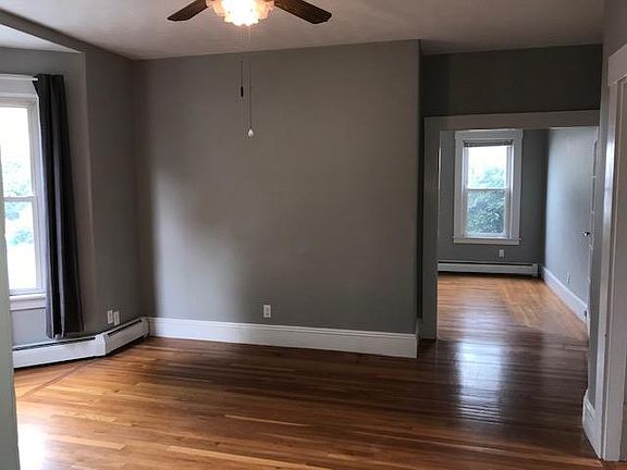 -1 large bedroom -1 office with a closet -living room -kitchen with fridge, stove/oven, and new stainless steel dishwasher -large mudroom with closet -hardwood floors throughout -2 off street parking spots -1st floor of a two family house -large fenced in yard (shared with upstairs tenant) -access to basement with storage -washer and dryer in basement -0.5 mile to commuter rail -0.8 mile to Lake Quannapowitt -no smoking -water/sewer included -tenant pays electricity and oil heat -First, last, and security deposit required -credit and employment check required