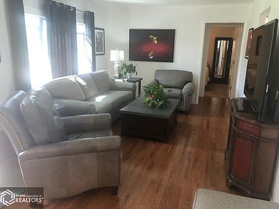 Stunning two-bedroom south Ottumwa home, remodeled throughout. As you enter the home, you'll notice the large living and dining room with new hardwood flooring that extends into the multi-purpose room, perfect for a home office. The kitchen has been totally renovated also with gorgeous gray cabinetry, quartz countertops, stainless appliances, and frosted sliders which provide privacy and lead to the backyard patio. Basement bonus space, updated bath, two detached garages here!