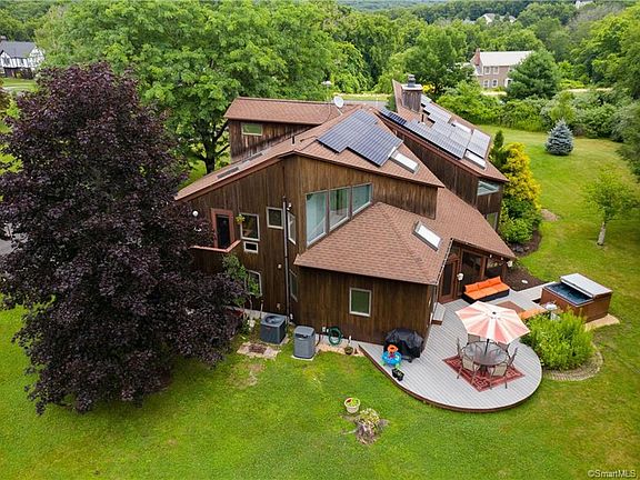 Modern, sleek, angular, light and bright throughout - Meet 'Lola' - custom designed and built taking advantage of natural light, solar power and with natures beauty creating the perfect artwork on display throughout the home. Soaring ceilings, angles and streaming natural light make this cypress wood home a true one-of-a-kind sited on +2 acres. Highly efficiency, high-end quality with a crisp, simple European style including cabinetry, tile and more. Living room with travertine marble and glass block double sided fireplace opens to the dining room, fabulous kitchen with center island, dining area and opens to screened-in porch off the ground level decking with hot tub. Main level den is easily used as an additional bedroom or office. Full bath and laundry complete the main floor. Upper level hosts the master bedroom, hardwood floors, with separate ductless central air, walk-in-closet and fabulous master bath. Two additional large bedrooms, one with a loft reading nook, and full hall bathroom. Enjoy morning coffee or just take in the sunset and starlit nights from the balcony upstairs, ahhhhh. Work-at-home office space is smartly designed with separate access from the driveway, too! Full unfinished basement offers plenty of storage space and all mechanicals are found here. This well maintained home is located close to everything from shopping, schools and major highways, only 90 minutes from Manhattan - A peaceful escape from the city & easy commute Welcome Home!
