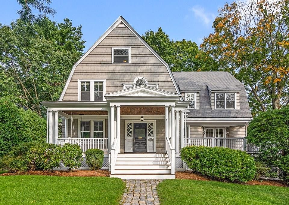 Curb appeal, convenience and charm define this shingle style Wellesley Farms residence boasting tall ceilings and brimming with natural light and period details. A spacious wrap around porch welcomes you to this signature property with open concept kitchen/family room, private master suite, updated baths and attached two car garage. Welcoming front foyer with polished hardwood floors and turned staircase opens to formal living and dining rooms with original pocket doors. Four generous bedrooms on second floor including private master suite. The third floor has two additional rooms which can be used for office, homeschool, bedroom or workout space. The finished lower level offers a playroom and mudroom with access to the garage and direct entry to an elevator which services three floors. Outdoor entertainment patio is steps from the back door and includes a built-in gas grille, wood fire pit and refrigerator. Close to Wellesley Hills train, shops, restaurants, and Caffe Nero.