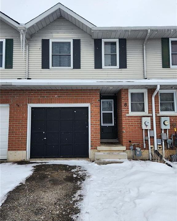 8 Garland Court. This 2 storey Row is situated on the north end of Ingersoll, 4km to the 401 highway and mere minutes to the down town core allowing this property to be both ideal and accessible for first time homebuyers, those looking to downsize or one looking to expand or start their income property portfolio. Built in `92 this home has three bedrooms, one and one half bath, partially finished basement(rec room)and attached garage. When we go to the backyard through the house, on the opposite side of the sliding door is a full privacy fenced yard, deck and hot tub(all 2020) Most windows and doors replaced 2020. new roof shingles 2018,eavestroughs, light fixtures and pot lights 2021. for more information or to book your showing call, click or text.
