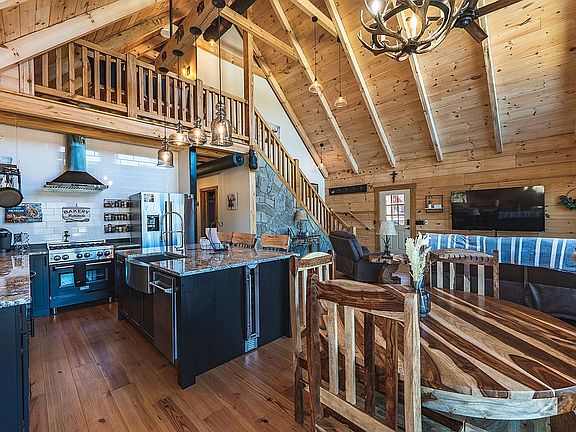 Buyers Agents Welcome!!! Bring your "BEST OFFER" !!! We will be accepting OFFERS till May 25th all offers must be presented on a NC - Real Estate contract, signed proof of funds must be attached, any offer that expires before May 26 will be discarded. Our home in Maggievalley is brand new it was completed construction in 12/15/21, It is available furnished or unfurnished, It is currently a SRT, It currently has booking’s through October, we can cancel the bookings for just transfer with sale, DO NOT GO TO THIS ADDRESS and LOOK AROUND, it is a STR, "Appointment is Required", the house has security and law enforcement will respond, we will also pursue charges you have been warned. DO NOT GO TO HOUSE WITHOUt APPOINTMENT !!! DO NOT DISTURB OUR GUESTS !!! MAKE AN APPOINTMENT !!! Ideal Log Cabin Luxury Log Home with Mountain views. this home boosts luxury fixtures and appliance's from ZLine, upgraded flooring throughout, Anderson Windows, upstairs flooring is old repurposed barn wood, its truly a one of kind, this house is NOT your standard "Builders Grade" low end crap, Cabin called “Dukes Cabin” has Great views. The minute you enter this Log cabin it invites you to experience the best the mountains have to offer. Long range mountain views. Located just across the Maggie Valley Country Club. Lot of privacy, seclusion and still be just minutes from Golf, Dinning, Shopping etc. As you enter in you will be surrounded by windows that bring the beauty outdoors in. Perfect if you are looking for a work-at-home getaway surrounded by peace and tranquility. Location We are just minutes off of the Scenic Blue Ridge Parkway and the Great Smoky Mountains National Park. The area is loaded with craft, antique and gift shops. The great outdoors offers horseback riding, golf on area mountain courses, trout fishing in streams, white water rafting and scenic drives. Snow skiing and tubing is available for the entire family at Cataloochee Ski Area. Nightlife includes everything from Jazz to Bluegrass, clogging or dinner entertainment. Our cabin is just a short drive to the Great Smoky Mountain Railway, The Biltmore Estate in Asheville, Cherokee Indian Reservation and Harrah’s Casino and historic downtown Waynesville. The Space Duke’s Cabin boasts approximately 1800 sq/ft of interior space. There is a large deck for eating or lounging, and fire pit perfect for taking in the fantastic mountain view. The downstairs has 1 king bedroom and 1 queen over queen bunk bed room. Upstairs has 1 queen bedroom with large windows overlooking the Great Smoky Mountains.
