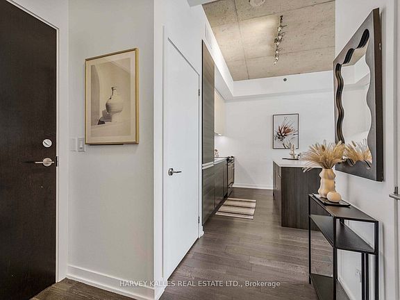 Boutique Living in the Heart of West Queen West. Welcome to Suite 615 at 8 Gladstone, a stunning one-bedroom residence offering 630 sq. ft. of impeccably designed living space. With soaring 10-foot exposed concrete ceilings and floor-to-ceiling windows, this open-concept suite is bathed in natural light and exudes sophisticated urban character straight from the pages of a design magazine. Every detail has been thoughtfully curated, including a brand-new custom kitchen island, a rare and sought after upgrade that maximizes both culinary functionality and entertaining space. Additional enhancements include designer light fixtures and custom closets, seamlessly blending form and function with elevated style. Step onto your private balcony to soak in the city's vibrant energy, or retreat indoors to a space that feels equally refined and inviting. At 8 Gladstone, modern conveniences extend beyond your suite. Enjoy amenities such as visitor parking, an elegant party room, and a dedicated dog wash station for your furry best friend, truly the perfect blend of boutique luxury and urban sophistication. Positioned in one of Toronto's most dynamic neighbourhoods, you're just steps from Trinity Bellwoods Park, Ossington, Liberty Village, Dundas West and Little Portugal. With cafés, restaurants, shops and grocery stores (Metro at your door, FreshCo across the street) plus the Queen Street streetcar at your doorstep, you are perfectly connected to everything the city has to offer.