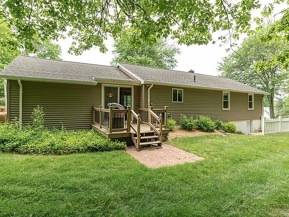Easy living in this well-cared for ranch. Open living room/dining room. Updated kitchen features nice center island. Newer bathroom with tile shower - (walk right in - nothing to step over) - with nice vanity sink and ceramic tile floor. Second bathroom has vanity sink and bathtub. Newer vinyl siding and landscaping. Sprinklers in front yard. 3 nice sized bedrooms. Gennerac generator with separate electric panel runs on Propane gas (two tanks leased from Osterman). Laundry connections in kitchen or basement. Stackable washer/dryer in kitchen remain - can be relocated to basement . Lovely front porch. Start or finish here!