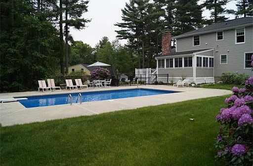 Be prepared to be impressed by this sparkling home that has been totally updated. Elegant kitchen has upgraded off white cabinets and granite, Electrolux stainless steel appliances, and French doors to the spacious 3 season room. Gleaming hardwood floors are throughout the home. Relax in the front to back family room featuring a brick fireplace, beamed ceiling and casement windows. Three lovely bathrooms and four generous bedrooms. The office and living room have first floor bedroom possibilities. Brand new septic system, aluminum fenced yard with heated in-ground pool, Reeds-Ferry shed, recent granite steps and patios, cedar clapboard siding, and 40yr roof. Heated playroom in the lower level, four-zone Burnham forced hot water furnace, central vac, two car garage, whole yard irrigation system and professional landscaping. Enjoy the picturesque natural setting that surrounds this special home. A+ cul-de-sac location within a short distance to routes 93 and 495. Simply the best!