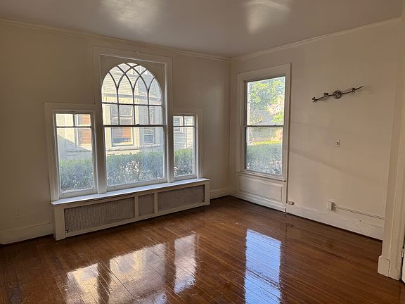 Light and bright first floor flat in pillared mansion off East Ave. Huge living room, two ample bedrooms with great closet space. Dining area adjacent to kitchen. Awesome fireplace mantel accents living room. Off street parking for two cars. 600+ credit, three times rent combined household income. Utilities budgeted @aprox $120/mth. by landlord.