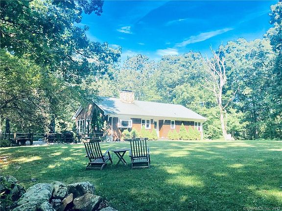 Welcome To 8 Graystone Lane~ This Charming "Cedar Shingle & Stone Adirondack Cottage", is set high on a knoll on a quiet country lane just off Lords Hwy- and a short walk to town & acclaimed Weston Schools. The foyer opens into the living room & informal dining area which has a wood burning fireplace large windows & overlooks a huge blue-stone-terrace/gated deck and private professionally landscaped grounds. The kitchen is newer with craftsman maple cabinetry, stainless steel appliances and granite counters, breakfast bar and sunny solarium/greenhouse window which adds a bright spot to enjoy your morning coffee. The lower level master bedroom is spacious with a newer bath & huge walk-in-closet & has access to walk out to the lawn/garden area. There are 2 additional upper level bedrooms, updated full bath with new & refurbished hardwood floors are throughout! The media/play-room- also has huge stone fireplace and walk out access. Many quality updates; cedar shingles, stone facade, newer windows & central air are all noteworthy improvements. Level, Lovely & Private lane yet; 3 miles to town center-5 miles to parkway- 15 min. to train, 55 min to Manhattan- Whether you are a first time buyer, down-sizing, looking to expand or for a great weekend cottage in the country, this home will not disappoint!