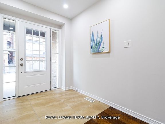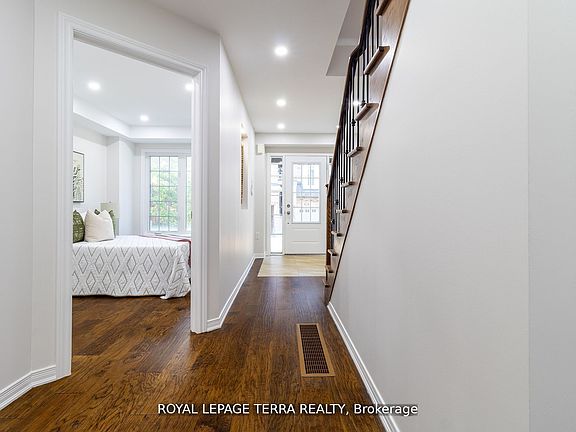 Immaculately Maintained Townhome in a Family-Friendly Community! Step into this bright and spacious 4-bedroom home filled with natural light and thoughtful upgrades. Enjoy the elegance of smooth ceilings (no popcorn!), brand-new hardwood floors in all bedrooms, and modern pot lights throughout. Freshly painted and move-in ready! A unique feature of this home is the ground-level bedroom with a full ensuiteperfect for guests, in-laws, or a private home office. The main floor impresses with 9-ft ceilings, direct garage access, and a stylish kitchen with a brand-new light fixture and ample cabinet space. The second floor also impresses with 8-ft ceilings and includes generously sized bedrooms, with the primary bedroom featuring a large ensuite and walk-in closet. With 4 bathrooms total and plenty of storage throughout, this home is designed for comfort and functionality. The unfinished basement offers the perfect canvas to create your dream rec room, gym, or studio. Prime Location Perks: Walk to the Amazon Distribution Center, medical clinics, Dynacare labs, gym, restaurants, and Tim Hortons. Surrounded by top-rated schools, scenic parks, and walking trails. Easy access to Hwy 401, 407, 412, and just minutes to Ajax GO Station for commuters. Short drive to Costco, Walmart, Cineplex, Home Depot, and Ajax Community Centre. Enjoy low-maintenance living with a POTL fee of just $160/month, covering snow removal and landscaping. Bonus features include no sidewalk, allowing for extra parking, and ample visitor parking nearby. *** Note: A fireplace outlet unit is available in the living room.****