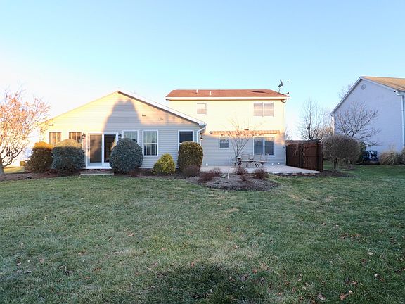 Updated and move in ready!!! A traditional style home with multiple living spaces to accommodate your lifestyle needs. Living space includes a formal dining room, eat in kitchen, space for a den/study, living room AND a first floor family room. Lower level has room for additional finished space if desired. Cherry flooring, ceramic tile and custom cabinetry add to the fine finishes. The first floor laundry room will make you LOVE laundry day! Exterior features include a beautiful patio with retractable awning, and a level lot with access to community features such as walking trails. Central Vac., gas heat 2019, central air, 2019.