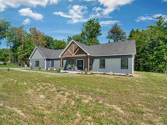 Open House 10/5 12-2, visit this spectacular new home! Ready for immediate occupancy! Located just a mile from Mt. Sunapee ski area and adventure zone and 1 mile to State Beach. Be dazzled by the large open plan with soaring vaulted ceilings! Prepare memorable gatherings and meals around this 6 Ft. Elegant Corian island. Relax in the tranquility of a partially wooded backyard and grill on the deck. The front porch may be where you enjoy a morning coffee...Single-story living, gracious primary suite with custom tile shower, walk-in closet, and double vanity. Bring your toys; the three-stall garage is heated and thoughtfully equipped with shelving for your storage needs. Radiant heat in the entire house will keep you cozy on those cold winter days. Natural light streams through the many windows. Located within a 5-mile radius are at least five dining opportunities and local entertainment. Agent interest