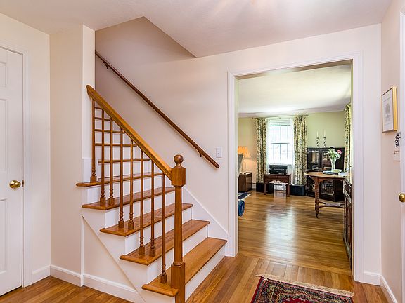 OPEN SATURDAY 7/14/18 11:30 -1:00 Pretty as a picture describes this classic New England Colonial featuring 3 bedrooms, 2.5 baths, bonus enclosed porch, library and home office space as well as a partially finished lower level. A gorgeous light and bright living room greets you as soon as you enter through the front door with its hardwood floors, huge windows, wood burning fireplace and a whole wall of built in bookcases and leads to a private library with its own fireplace that is just a dream come true. Guest bath and laundry are well situated The fully applianced kitchen is large and offers lots and lots of cabinets and counter space. The butcher block counters are unique and oh so pretty. A cozy den with another wood fireplace brings you right through to the enclosed porch overlooking the private woodlands.Upstairs you will find 3 large bedrooms 2 bathrooms, a small could be office space and access to a large attic. The lower level is partially finished and still has plenty of storage and work space.
