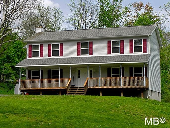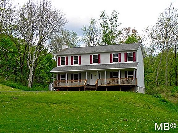 Lovely, traditional style 4 bedroom, 2.5 bath Colonial with rocking chair front porch on 2.2 quiet country acres. Well kept home, hardly used. Open floor plan. Large eat in kitchen with oak cabinets & breakfast area. Formal living & dining room. Family room w. pellet stove to augment heating costs. Spacious master bedroom with arched walk in closet, master bath with soaking tub and shower, 2 octagon windows. 3 additional bedrooms plus office/den. Great backyard with shed. Huge basement with bilco doors.
