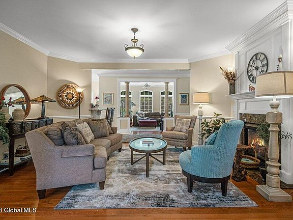 Completely updated home in highly sought after East Hills of Loudonville. First floor primary suite with jet tub, separate walk in shower, and double walk in closets. New hardwood floors, throughout first floor with living room, sun room, wet bar, dining room, spare room/office adjacent another full bath, and updated eat in kitchen. Kitchen boasts Frigidaire appliances, subway tile, Quartz counters, soft close cabinets and recess lighting. The second floor has another two bedrooms, full bath and landing space reading nook. For more entertaining syou have about 1600 sqft of finished basement space, that offers a family room, laundry room, utility room and workout space with second egress. Outside offers secluded backyard with trex decking and massive 2 car garage.