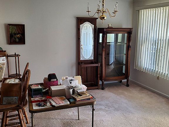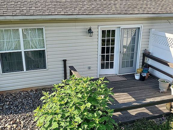 This one floor living home features: a Relaxing covered front porch with PVC railing, Living/Dining room combo with vinyl plank flooring and crown molding. Eat in kitchen with Vinyl plank flooring, crown molding, gas stove, dishwasher, microwave, refrigerator and breakfast bar. Hallway full bathroom with tub shower combo, and laundry closet with washer and dryer. Primary bedroom features ceiling fan and closet. Primary bathroom features a 5' walk in shower with grab bars. Single vanity and linen closet. Bedroom 2 with ceiling fan, closet and french door giving access to back deck deck. 1 car, front entry garage