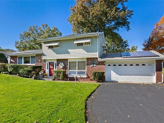 Lovely mid-century modern, 4 bed/3 bath split level home in highly desirable Lawrence Brook. New deck overlooks well maintained and manicured grounds. First floor MBR and bath is perfect for today's mutli-generational buyers. This room could also be used a a home office. The wide floor to ceiling windows in den takes in plenty of sunlight and grants access to the oversized garage. The main floor has newly finished hardwood floors & open concept cathedral ceiling living room, dining room & kitchen with access to the deck. The bedroom level has ANOTHER master suite w/WIC closet & bath. Main bath on this floor with a shower tub and two other bedrooms. All of the bedrooms on the floor have hardwood floors under the carpeting. The basement is finished with a cedar closet and workshop. It is currently being used for storage. EB is famous for it's Blue Ribbon schools. It is also easily to commutable to NYC for work and pleasure. HVAC, HWH - 6 yrs
