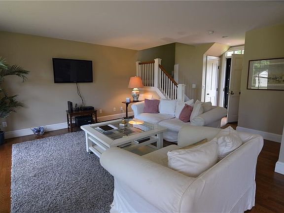 This unique and charming cottage is located on a waterfront estate overlooking Newport Harbor. Nicely furnished with hardwood floors and open floor plan. Updated kitchen with granite counters, gas stove and stainless appliances. Dining area has large picture window overlooking the grounds and water beyond. The Living room furnishings are shabby-chic with flat screen TV and arched French doors which open to private brick patio and expansive lawn stretching to Newport's harbor front. The Master suite has wall-to wall carpeting with King bed, nice closet space and large deck also overlooking the grounds and water. There is a second bedroom with two twin beds and ajoining bath with shower. Attached one car garage and additional driveway parking. Available as a yearly rental beginning September 1st, 2018.