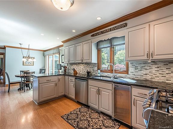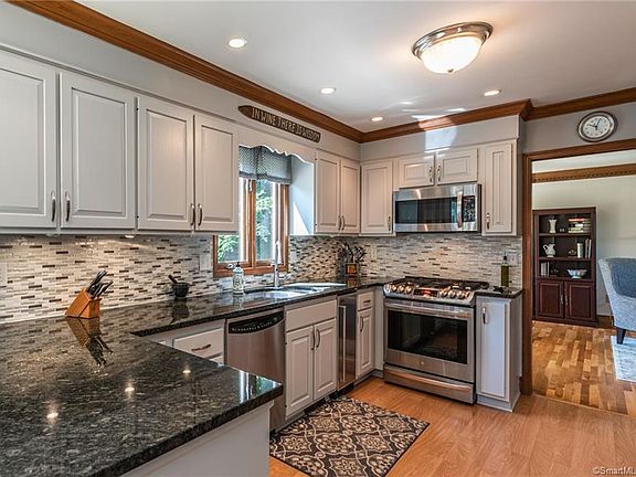 Pride of ownership abounds throughout this 4 bedroom, 2.5 bathroom classic Connecticut Colonial perfectly positioned upon a level and expertly landscaped property and located within walking distance to town. A hard to find trifecta of city water, sewer and natural gas offers an easy living opportunity. Inside we find a wonderfully refreshed kitchen with newer stainless steel appliances, refinished and ample cabinetry and granite counters. The expansive family room with cozy fireplace and direct access to the screened in porch is a great venue for entertaining. Formal yet relaxed dining and living rooms ad even more floor plan flexibility. Upstairs we find a master suite with walk in closet and updated full bathroom with marble tile, tube and separate shower. Three other generously sized bedrooms share another updated and well appointed hall full bathroom. The lower level is ready to be finished to meet any new buyer's needs. Outside features a large deck space that steps down to a brick patio and overlooks the level and private backyard. An attractive shed off to the side is great for storing yard equipment. Several mechanical upgrades within the past 7 years and a consistent commitment to service and proper ownership makes this home a rare find in today's market!