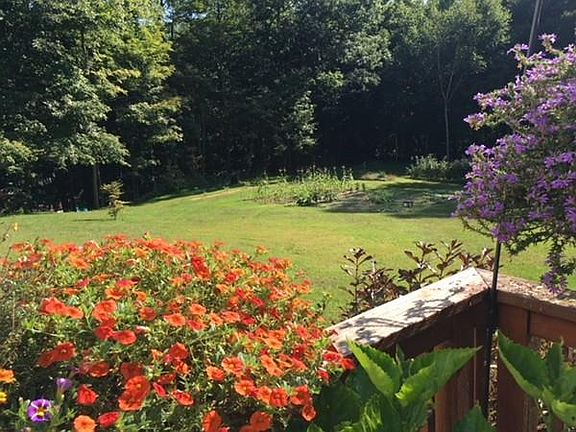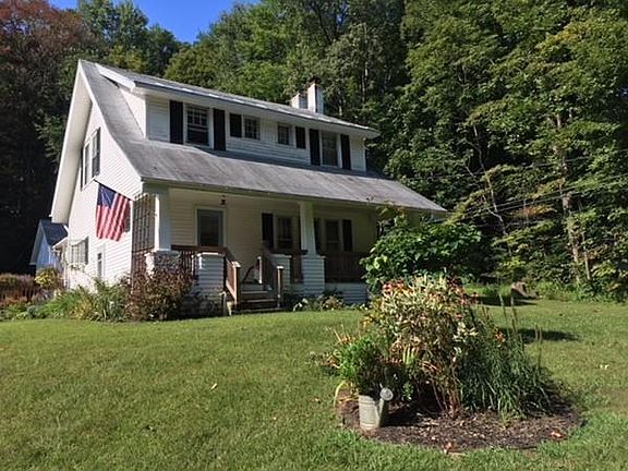 Check out the best location in downtown Chester. Set up on a hill, overlooking the quaint little village and Walker Brook just across the street. Great home with 4 bedrooms, 1 bath, 2 car garage, on 2.8 acres of complete privacy. Enter to the new kitchen with bamboo flooring and new appliances, dining room is open to living room which has a pellet stove to keep you toasty warm. Hardwood floors through out the house. Open staircase, completely restored, leads to the 4 bedrooms or 3 bedrooms and a great office, and a new bathroom upstairs, new fixtures and custom built storage, bright and sunny. Off the kitchen is a breezeway with newer windows, leading out to your front deck which overlooks your beautiful yard, including blueberry bushes, vegetable garden and perennial beds. Sit on your pillared front porch and sip your coffee enjoying the tranquility and the sound of the birds. Add the 2 car garage and this is the perfect property. First showings at open house on October 14 12-2 PM